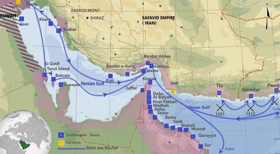 Four hundred years ago traders as the East India Company fought to secure its markets via the Strait of Hormuz.